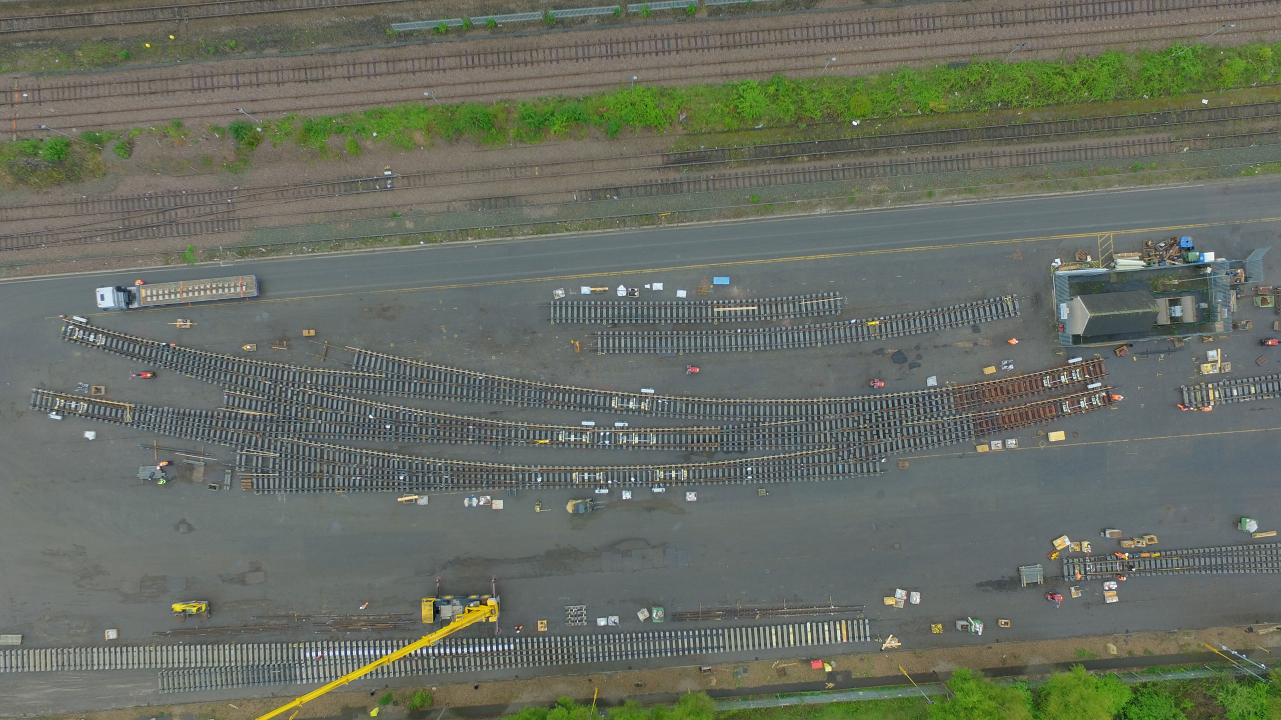 Realizado con concreto, el cruce presenta ventajas tales como una estructura más fuerte y una mayor vida útil. Además, el cruce, de 1,800 metros de longitud, fue diseñado y construido en unas instalaciones situadas aproximadamente a 80 kilómetros de Londres. Cada una de las traviesas de concreto fue numerada y codificada con color antes de ser apiladas y trasladadas a las instalaciones de montaje, para después ser reubicadas a un patio ferroviario para disposición e incorporación a la pista.